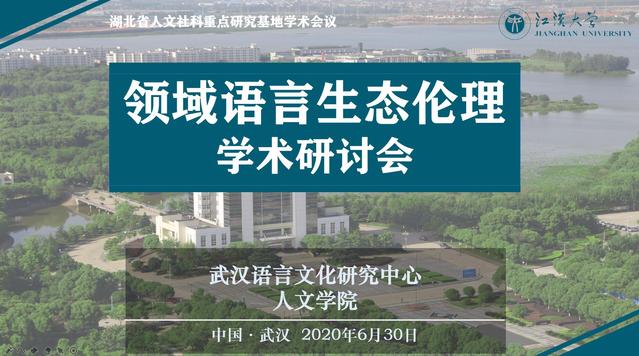 2020年6月30日,我校人文学院和武汉语言文化研究中心联合举办的“领域语言生态伦理”线上学术研讨会召开。来自复旦大学、武汉大学、上海外国语大学、西南交通大学、中南民族大学、上海师范大学、黄冈师范学院和我校人文学院、外语学院、武汉语言研究中心的60多名专家学者出席了会议。人文学院教授、武汉语言文化研究中心副主任潘世松博士主持了学术研讨会,人文学院副院长、武汉语言文化研究中心主任庄桂成教授致开幕词并作学术总结。