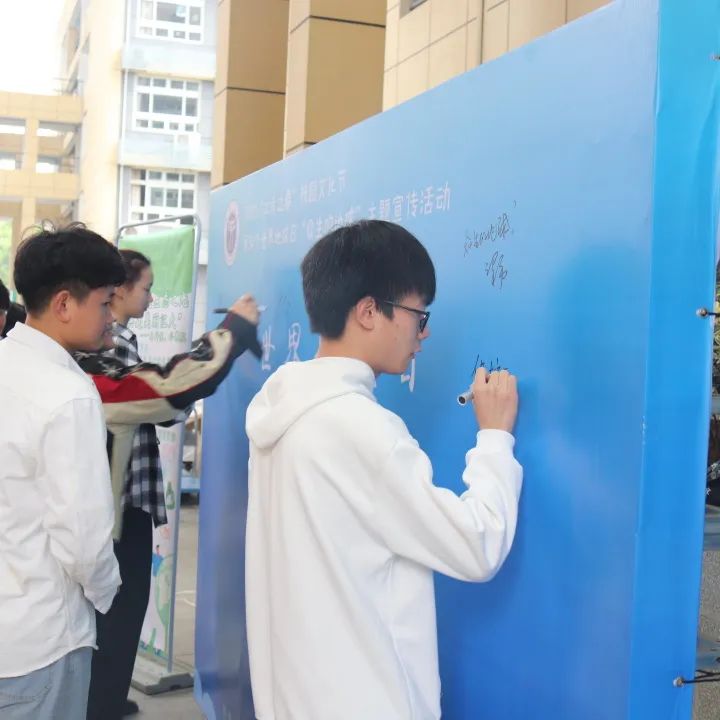 活动由生命科学学院、环境与健康学院联合举办,两院师生一道在活动上签署环保宣言。园艺协会、绿舟环保志愿者协会和Foodie食佳美食社学子带头签署环保承诺,共践生态文明。