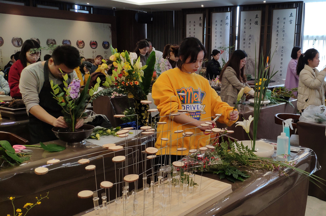 本次比赛由湖北省人力资源、社会保障厅和湖北省林业局主办,湖北省花木盆景协会、湖北省生态工程职业技术学院、明德书院武汉国学馆承办。来自全省高校和行业的专业选手参加了比赛。据了解,参赛选手需在120分钟内完成中国传统插花和礼仪插花两个项目的比赛,时间有限,竞争激烈。中国传统插花需从瓶、盘、篮、缸、碗、筒六大容器自选一个容器进行创作,礼仪插花需从花束、花篮、桌花中任选一个形式进行创作。我院6名参赛选手从设计构思、花材容器选择,到插花造型,努力做好每一个步骤,每一个细节,精心完成了比赛作品。