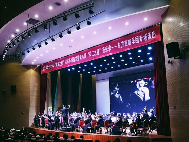 12月12日晚上,江汉大学2019“清源之秋”读书节闭幕式暨第八届“长江之春”音乐季东方交响团专场演出在学术交流中心明德厅举行。我校党委副书记张英和师生们一起观看了演出。