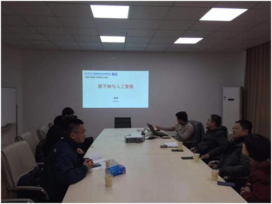 赵峰研究员介绍了原子钟的基本概念,原子钟研制过程对人工智能的需求,以及原子钟所能提供的高精度时间对人工智能发展的促进。他谈到,江汉大学物理与信息工程学院在原子钟领域也有大量的研究成果,以后要在共同研发和成果转化方面加强合作。