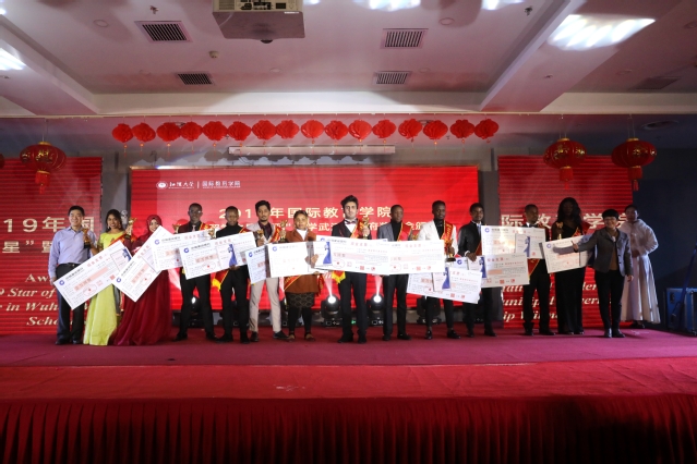 党委学工部部长赵静、教务处处长周昕、校党委宣传部副部长陈谷分别为国际教育学院“文艺之星”“国际游学之星”“奉献之星”颁奖,副校长李卫东和武汉市教育局国际合作与交流处处长董亦频为“来华留学之星”暨2019年“留学武汉”政府奖学金获得者颁奖。希望他们不忘初心、砥砺前行,争取更大的成绩,也希望其他同学以此为荣,向他们学习。