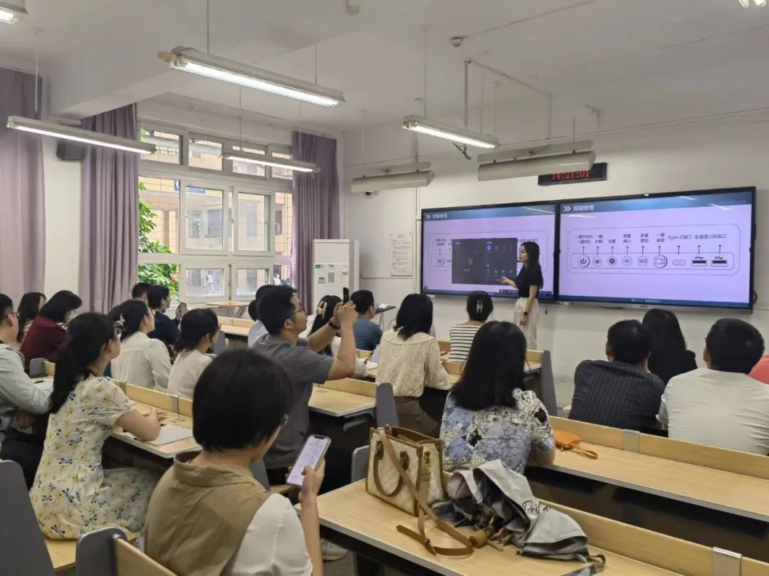 为提高青年教师在教学中熟练使用现代化教学设备,深入推进智慧教学,按照《江汉大学2024年本科教育教学年实施方案》要求,教师发展中心、网络与数字化建设办公室、教务处三部门联合组织我校40岁及以下青年教师共计440人开展“多媒体教室、双屏教室和智慧教室操作使用培训”。本次培训分为两期,分别在2024年5-6月、9-10月举办。每期培训包含四个部分内容分别是双屏教室、多视窗教室、研讨型智慧教室、阶梯智慧教室四种教室使用的培训。