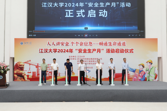 今年6月是全国第23个“安全生产月”,活动主题为“人人讲安全、个个会应急——畅通生命通道”。启动仪式上,校园建设处有关负责人宣读了《江汉大学2024年安全生产月活动方案》,武汉市桥梁工程有限公司总经理助理吴义作为生产方代表作表态发言,由校园建设处、后勤服务保障中心、保卫处有关负责人和武汉市桥梁工程有限公司有关负责人领誓,参会人员共同宣读了安全生产誓词,并参观学习了摆放在活动现场的各类安全知识宣传展板。