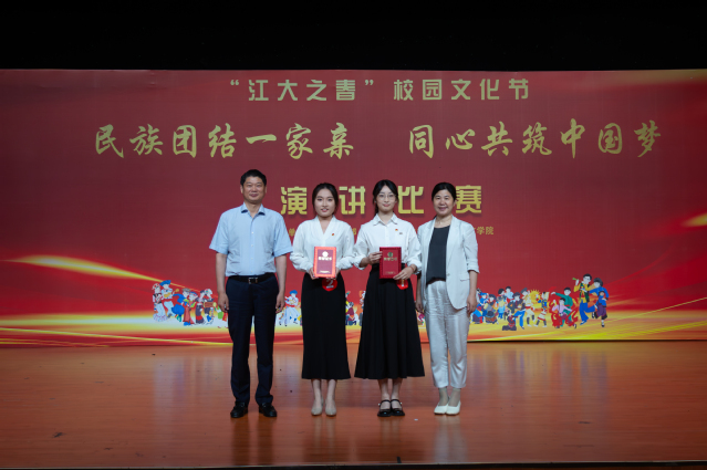 5月17日,由党委统战部、校团委、人文学院联合主办的江大之春校园文化节“民族团结一家亲,同心共筑中国梦”演讲比赛决赛在音乐学院演播厅举行。经过激烈角逐,教育学院张睿君、人文学院张雨欣等2名选手荣获一等奖,法学院邵辰雪、马克思主义学院卢艳、设计学院周韵等3名选手荣获二等奖,人工智能学院郭炎东和务瑞阳、人文学院章浩宇和王婉琪、商学院孔祥磊等5名选手荣获三等奖。