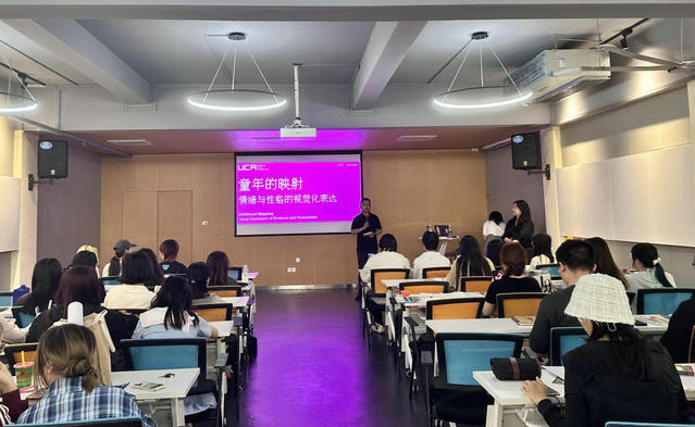 当日下午,在设计学院多功能厅,英国创意艺术大学中国区业务拓展经理Sara Zhao为美术学院和设计学院60名学生开展主题为“童年的映射:情绪与性格的视觉化表达”的创意工作坊活动。