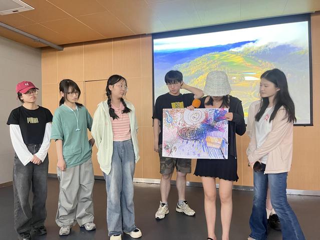 活动中,Sara带领同学们探讨童年的现实场景和内心体验,并提出将童年经历与设计结合的观点。通过对童年的描述,探讨了童年的喜怒参半和家庭和谐的重要性,同时也探讨了AI创新创作方式。工作坊从《蛤蟆先生去看心理医生》一书探究情绪是如何形成的,儿童基本情绪与色彩间的关系以及与线条+声音的关系。Sara给同学们进行了“情绪-线条+声音”测试,让同学们用属于自己的艺术手法进行自我童年的画像。同学们积极投入到现场创作中,展现出无限活力和创造力。在创作过程中,同学们不仅展现出高超技艺和深厚艺术底蕴,更在相互交流与学习中,不断激发彼此的灵感和创造力,共同探索艺术的边界,挑战自我极限,用心灵与双手创造出属于自己的艺术世界。