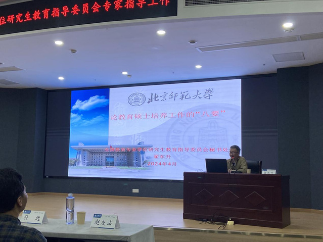 翟东升教授在报告中阐述了教育硕士的培养工作需遵循“八要”,即培养目标要清晰、领域拓展要谨慎、前置专业要把关、培养方案要规范、实践教学要重视、案例教学要开展、论文标准要理解、队伍建设要永远在路上,引发现场师生对教育硕士研究生培养的深思。