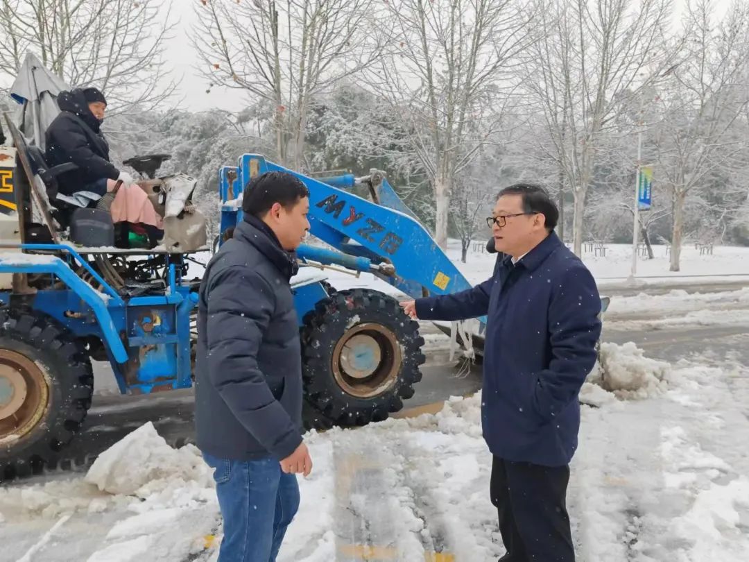 “这里没有领导,但有学生。”自2月3日起,学校校领导带队,组织在校教职工投入扫雪除冰一线,进行人工铲雪除冰、并协调校园建设处调用铲车清理校园主干道积雪。