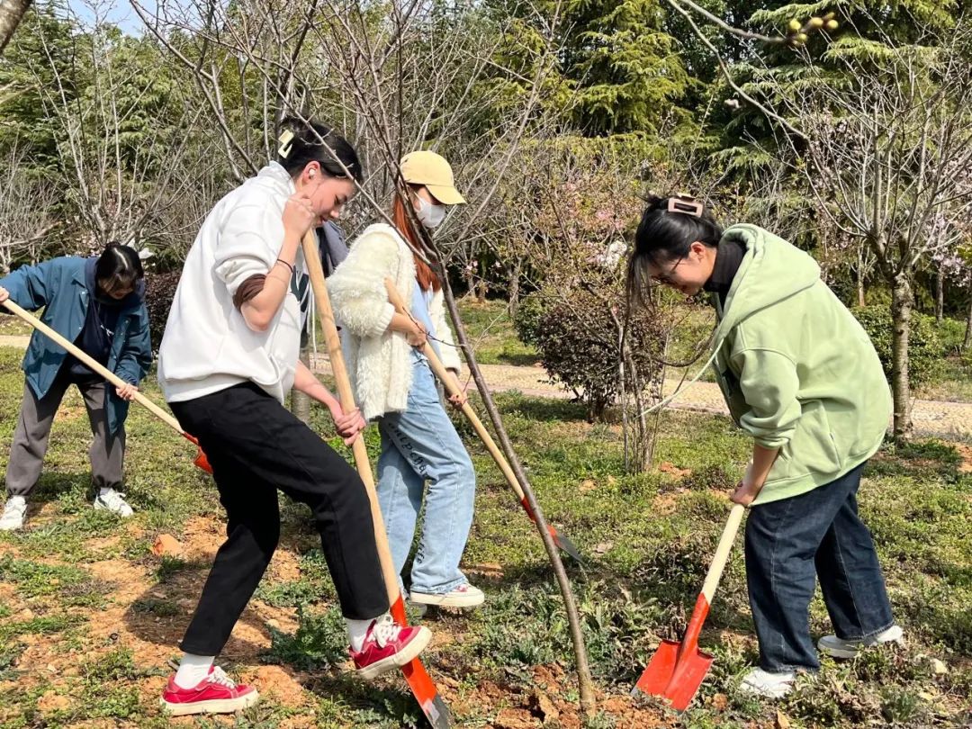 在大家的共同努力下,一棵棵樱花树、梅花树在清源河旁扎根生长,交织出春日校园的盎然生机。