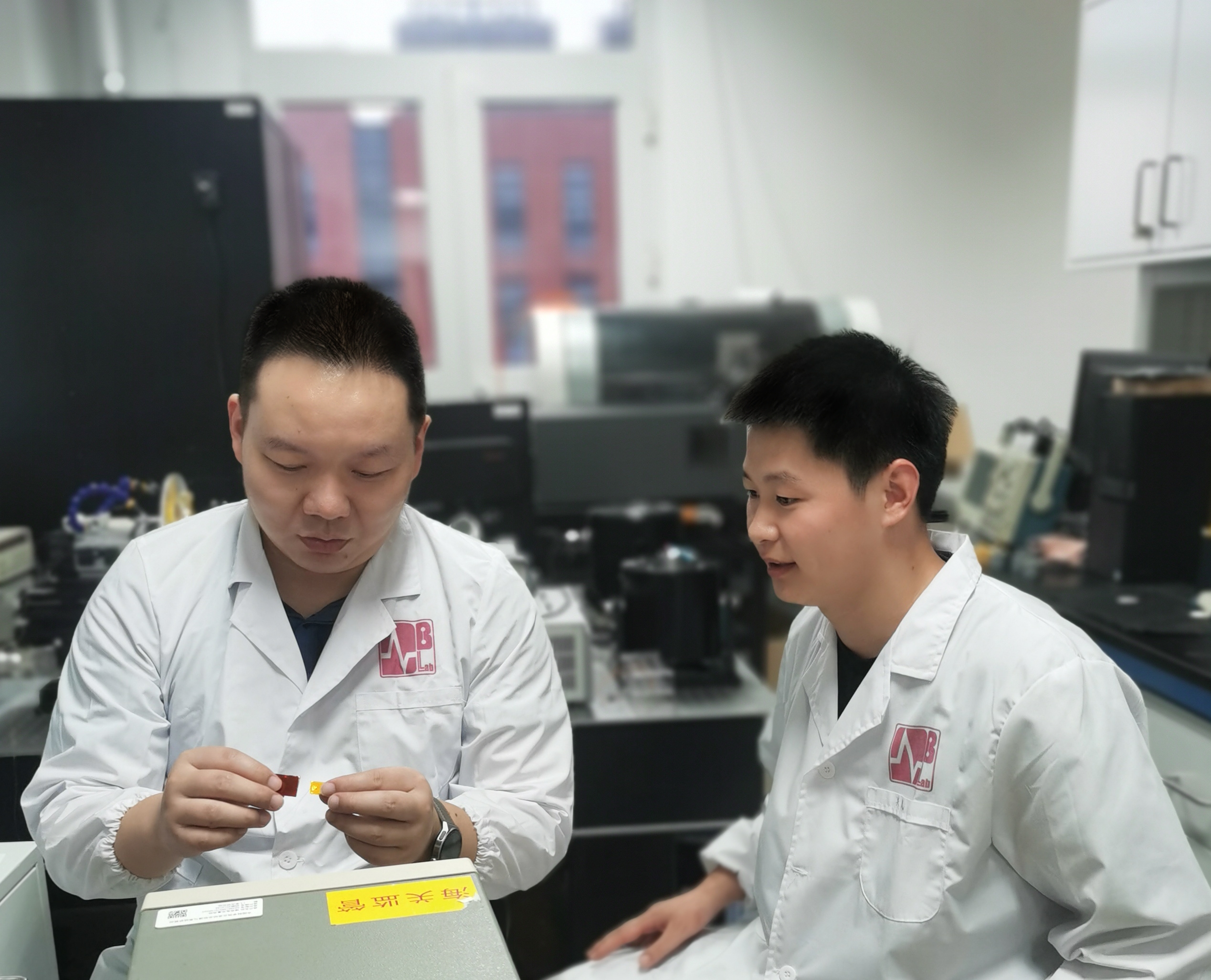 吴钰祥教授(左)和吴礼博士(右)在进行电学测试
