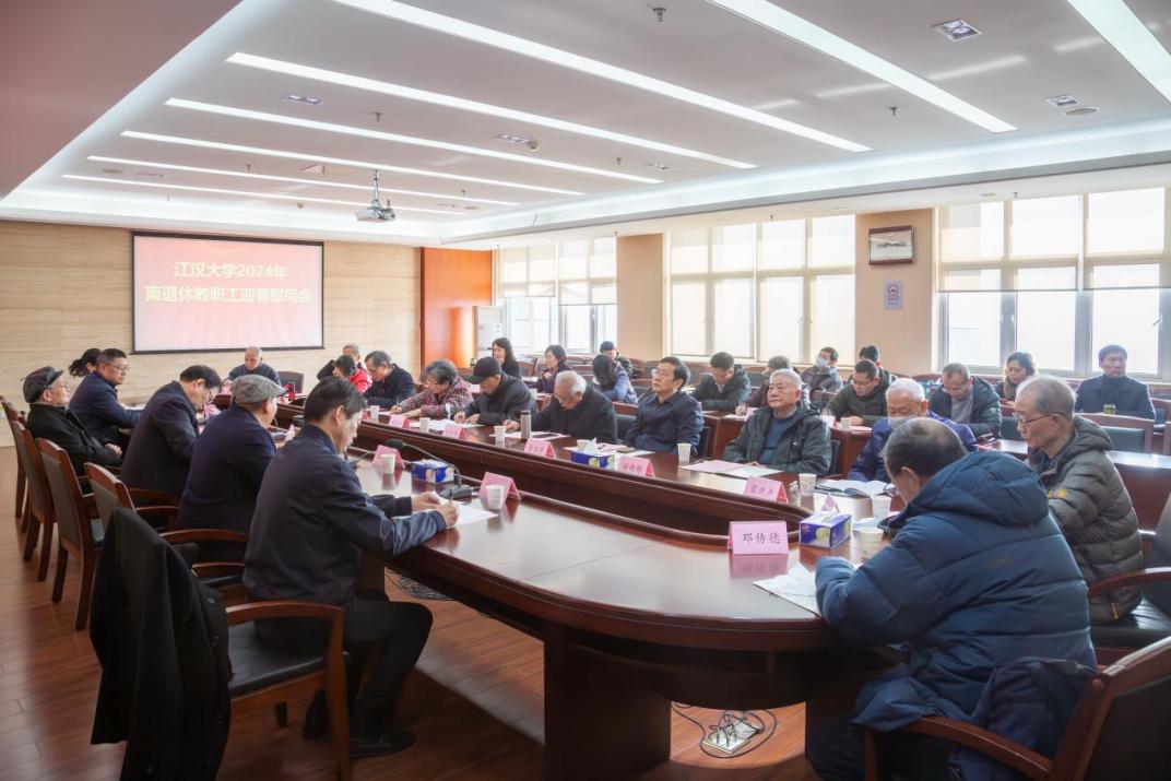 1月12日,江汉大学离退休教职工迎春慰问会在武汉市委老干部局会议室圆满举行。校党委书记覃道明,市委老干部局二级巡视员丁汉君、二处处长岳巍及学校办公室、人事处、离退休工作处负责人,部分老同志代表与会。副校长张红星主持会议。