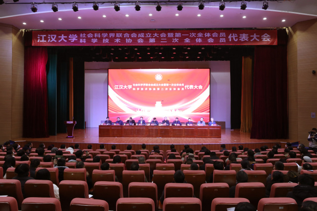 12月21日上午,江汉大学社会科学界联合会成立大会暨第一次会员代表大会、江汉大学科学技术协会第二次会员代表大会在学术交流中心举行。