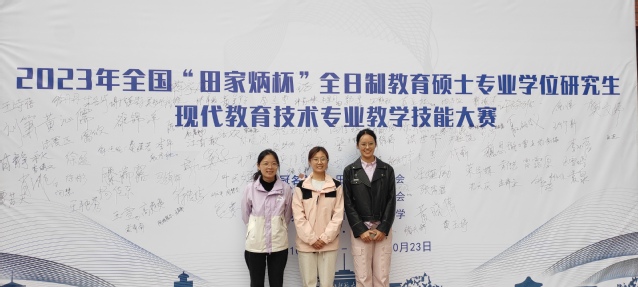 10月20日至23日,2023年全国“田家炳杯”全日制教育硕士现代教育技术专业教学技能大赛决赛在西北师范大学举行,教育学院王艳秀同学获得二等奖,贾若天同学、向慧同学获得优秀教学设计奖。