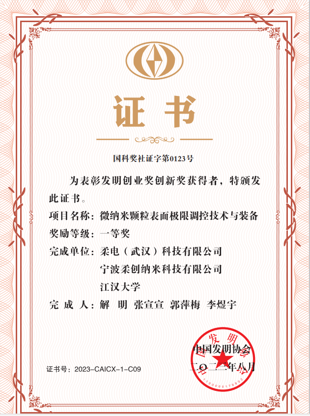 近日,中国发明协会公布2023年度发明创业创新奖评审结果。我校联合柔电(武汉)科技有限公司等单位共同申报的“微纳米颗粒表面极限调控技术与装备”项目获评发明创新一等奖。该成果在国内首次实现微纳米颗粒表面极限构筑、极限调控、极限制造(3E),并开发了基于原子层沉积技术的粉体包覆装备,是我国在该领域的突破性成果。江汉大学作为第二完成单位、人文学院教师钟虹博士作为第三完成人参与的“自然语言汉语言处理中的情绪意愿转达研究与实践”项目荣获发明创业奖创新奖一等奖。